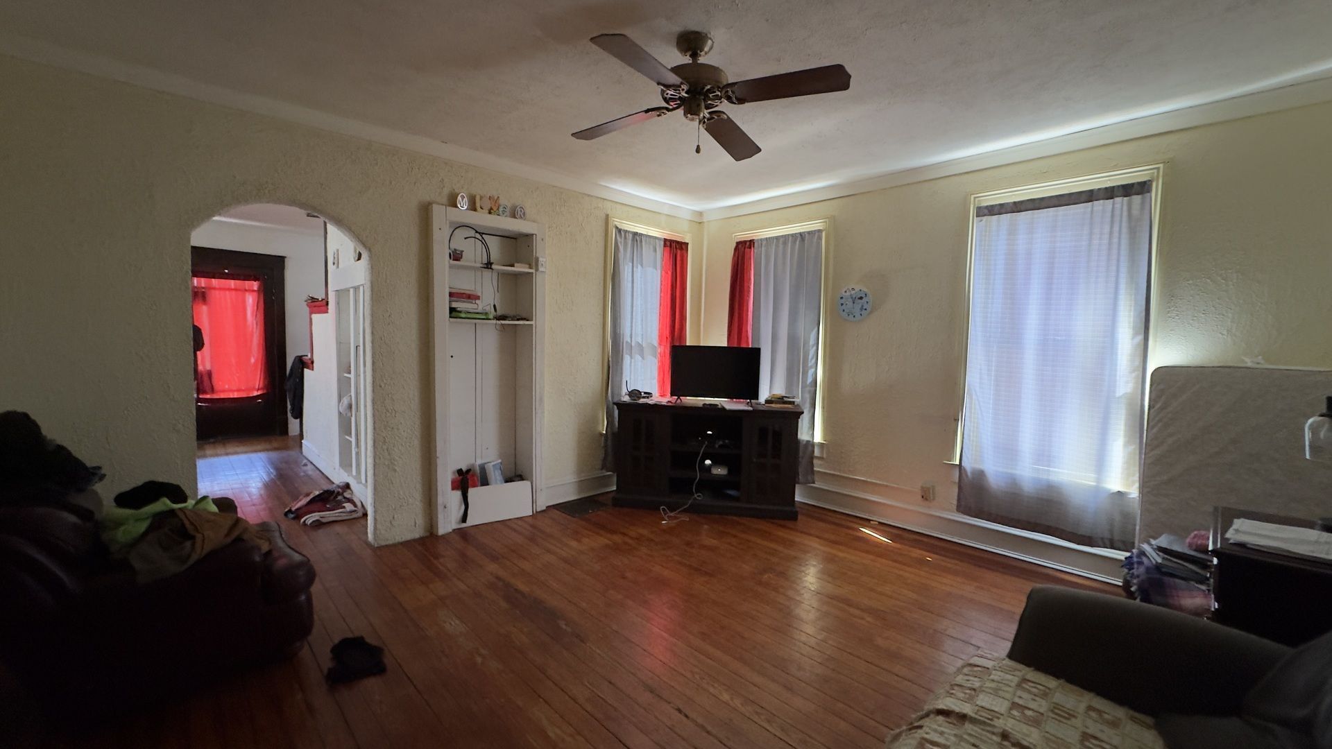 Whether you're searching for your first home, an investment opportunity, or a renovation project, this 4-bedroom, 2-bath home offers incredible potential. Featuring classic details such as spacious rooms, curved walls on 2nd floor, and charming archways, this property is ready to be restored to its former glory. Highlights include main floor laundry, wood flooring throughout, and generous living spaces. The primary bedroom offers a walk-in closet, and the large fenced backyard provides plenty of outdoor space. A full bathroom on the main level features newer tile. Additional updates include newer furnace, and water heater. The galley kitchen includes appliances that will remain. (roof approx. 2007)